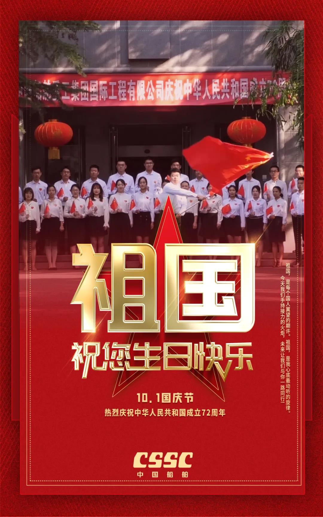 祖國(guó),是每個(gè)國(guó)人冀望的期許!祖國(guó),是船舶人心底最動(dòng)聽的旋律!72年來,新中國(guó)經(jīng)歷了風(fēng)風(fēng)雨雨;72年過去,成就了盛世風(fēng)華,中國(guó)船舶六〇二院全體員工祝新中國(guó)生日快樂!