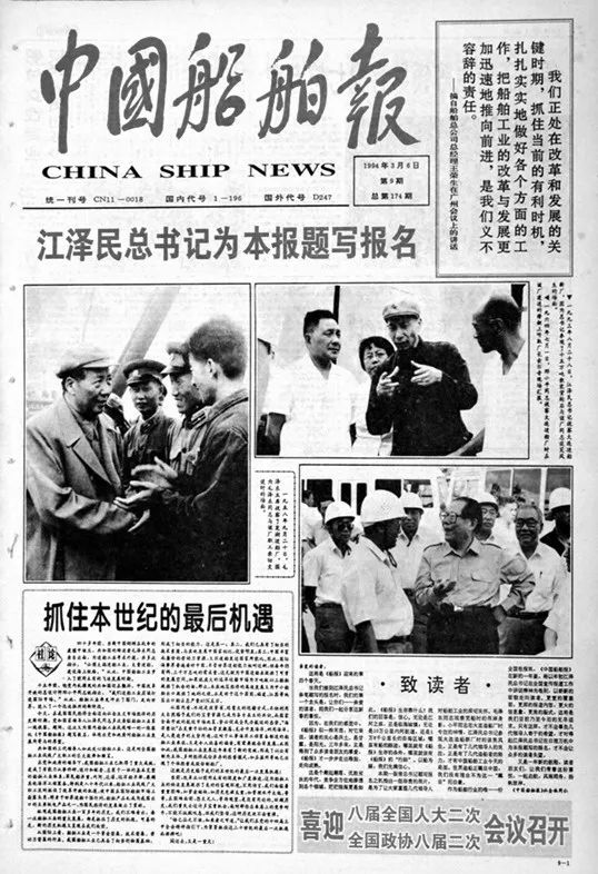 1994年3月6日,《中國船舶報(bào)》首次啟用江澤民同志親筆題寫的報(bào)頭。