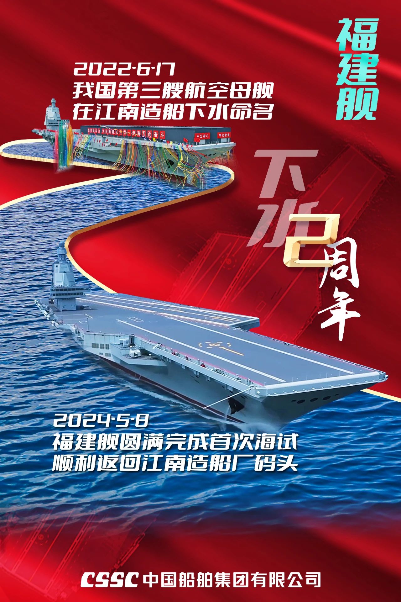 兩年前的今天,我國(guó)完全自主設(shè)計(jì)建造的首艘彈射型航空母艦——福建艦,在中國(guó)船舶集團(tuán)有限公司江南造船廠下水。