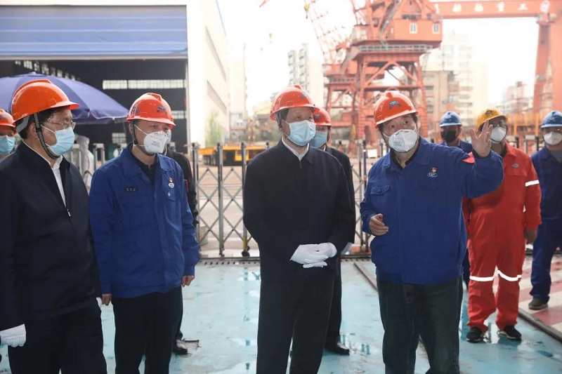 ????3月25日,湖北省委書記應(yīng)勇到中國船舶集團(tuán)有限公司所屬武船集團(tuán)調(diào)研復(fù)工復(fù)產(chǎn)、加快發(fā)展情況。省委常委、武漢市委書記王忠林,副省長曹廣晶及省委、省政府有關(guān)部門負(fù)責(zé)同志參加調(diào)研。