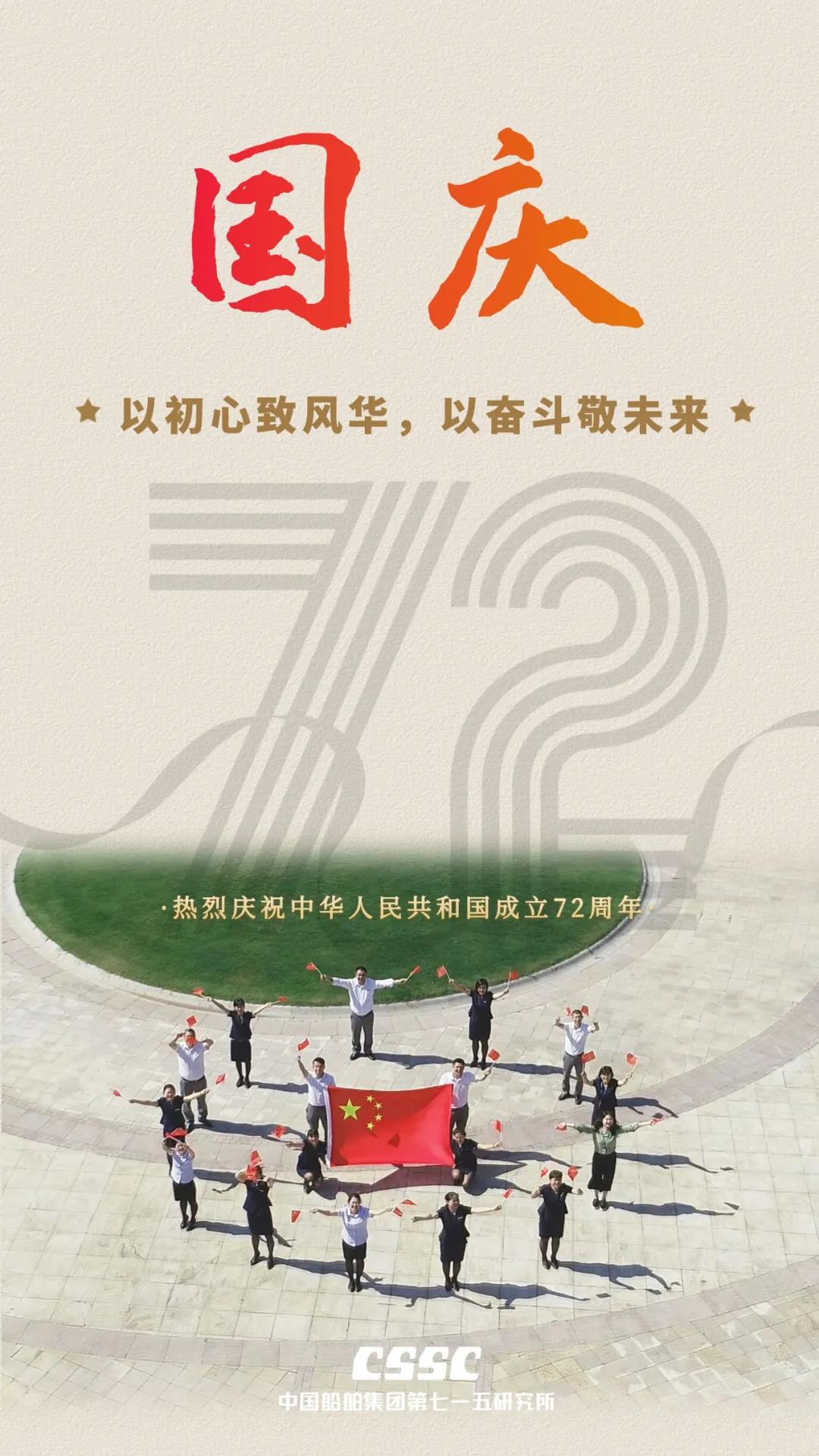 祖國,是每個國人冀望的期許!祖國,是船舶人心底最動聽的旋律!72年來,新中國經(jīng)歷了風風雨雨;72年過去,成就了盛世風華,中國船舶六〇二院全體員工祝新中國生日快樂!