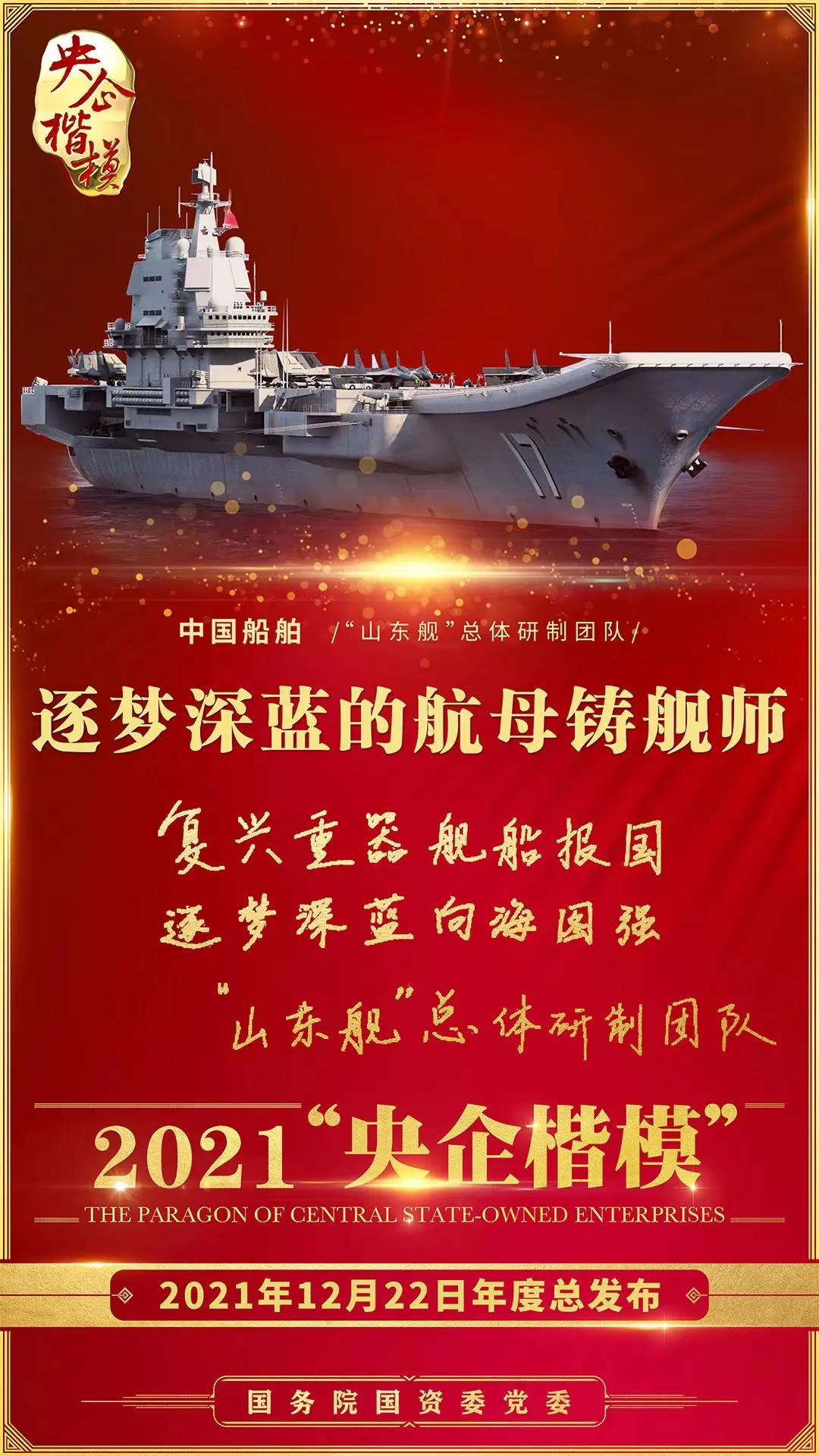 12月22日,國務院國資委黨委舉行2021年第二批“央企楷?!卑l布暨年度總發布儀式,中國船舶“山東艦”總體研制團隊榮獲2021年“央企楷模”榮譽稱號。繼“奮斗者”號萬米載人潛水器研發團隊獲評2020年“央企楷?!睒s譽稱號后,中國船舶集團再獲此殊榮。