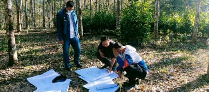▲馬翔(中)為集團(tuán)定點(diǎn)幫扶項(xiàng)目現(xiàn)場選址