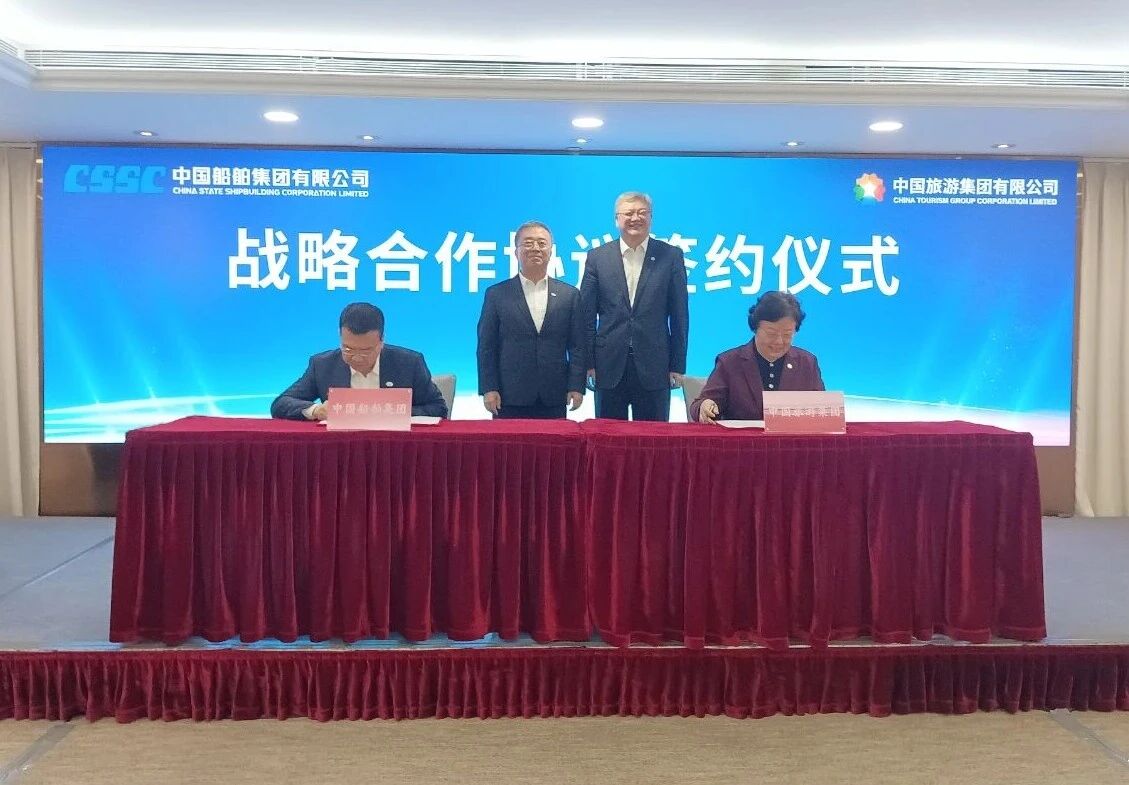王國(guó)強(qiáng)同時(shí)見證了中船集團(tuán)與中旅集團(tuán)簽署戰(zhàn)略合作協(xié)議,中船集團(tuán)旗下江南造船聯(lián)合中船貿(mào)易與Seaspan、上海中遠(yuǎn)海運(yùn)LNG簽署超大乙烷運(yùn)輸船(VLEC)合作備忘錄;與相關(guān)中央企業(yè)舉行會(huì)談并簽署戰(zhàn)略合作協(xié)議。