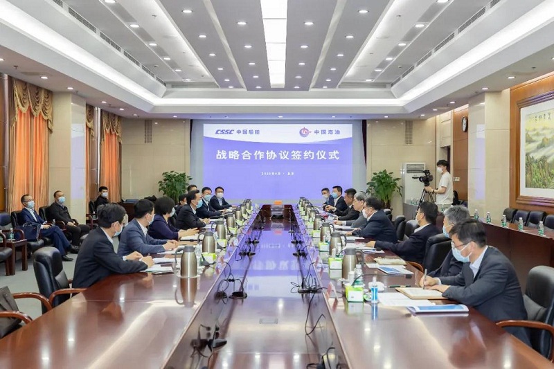 ????根據協議,中國船舶集團和中國海油將建立戰略合作伙伴關系,充分發揮在各自領域的優勢,在海洋油氣勘探開發業務及相關裝備、油氣運輸業務及相關裝備、綠色清潔能源拓展、裝備科研開發等領域開展全方位合作。