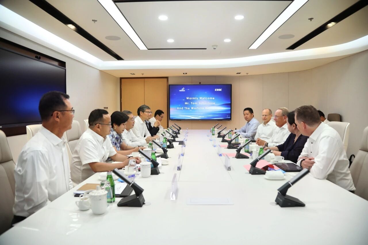 王國強對Tom Johnstone一行到訪中船集團表示歡迎,并介紹了中船集團發展情況。王國強表示,瓦錫蘭集團是中船集團的緊密合作伙伴,雙方具有良好的合作基礎,未來合作空間廣闊。希望未來雙方發揮各自優勢,進一步加強在船舶動力總成研發、設計、制造、售后服務以及新能源、碳捕捉技術、智能化技術、海洋生態等領域的互利合作,加強中速機研發、設計領域的人才交流互動,開啟共創共贏發展新局面。