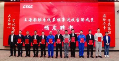 會上播放了《2020年上海船舶系統勞模、先進風采錄》視頻,為12位勞模事跡巡講團成員頒發了聘書。按照計劃,勞模事跡巡講團將赴上海船舶系統的企事業單位進行宣講。