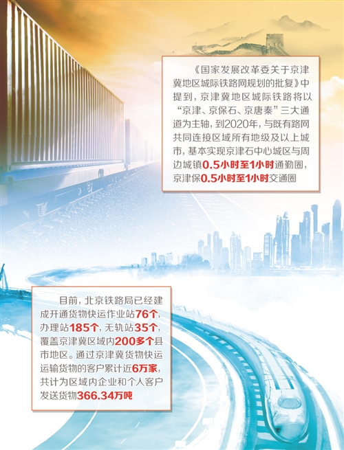 近年來,北京鐵路局先后開行了京津冀貨物快運(yùn)列車、特快、快速和電商班列,打造了一批現(xiàn)代物流基地,提升改造了一批集裝化設(shè)施,為區(qū)域經(jīng)濟(jì)發(fā)展提供了強(qiáng)大運(yùn)力支撐和物流保障。