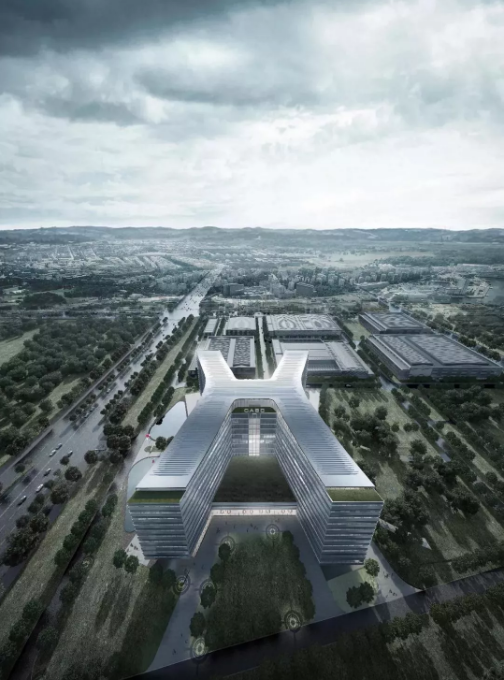 ????▲ 外立面設計簡潔大氣,既與務實創(chuàng)新的航天精神相融合,又和園區(qū)內其它建筑單體以及外圍建筑風格相協調。