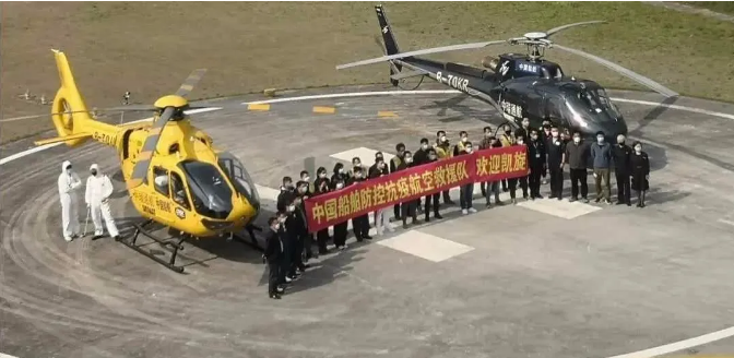 ????3月18日,隨著兩架直升機緩緩降落在上海金橋直升機基地,中國船舶防控抗疫航空救援隊在圓滿完成湖北抗疫任務后凱旋!2月5日,在中國船舶集團系統工程院的統一部署下,海豐通航與中瑞通航組成中國船舶防控抗疫航空救援隊,先后投入三架直升機,赴武漢、溫州,輾轉仙桃、宜昌、黃岡等地,歷時四十天,飛行近百小時,轉運抗疫急救物資十多萬件,充分發揮了直升機靈活、高效的優勢,成為防控抗疫行動中重要的空中力量。