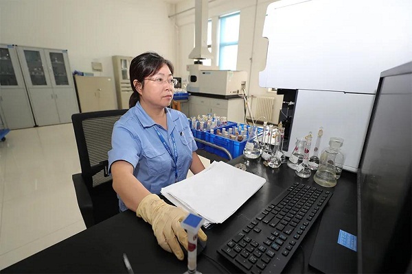 △七二五所高級工程師杜米芳正在進行艦船鈦合金微量元素快速分析方法試驗