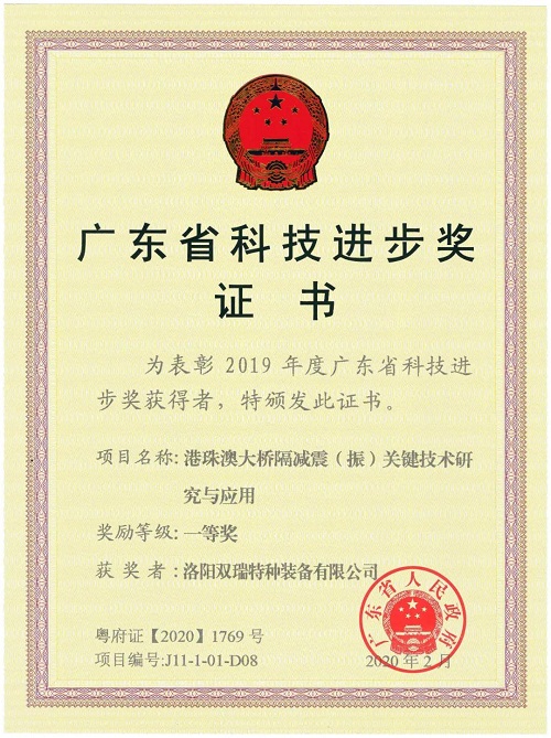 ????雙瑞特裝與港珠澳大橋管理局等9家單位,歷時10年聯合攻關,創建了超長復雜跨海橋梁減隔震新體系,成功應用于港珠澳大橋,抗震性能從抗7度提高到抗9度,造就了世界超長跨海大橋的減隔震示范工程。
