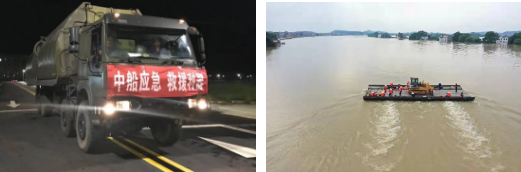 △ 中船應(yīng)急動力舟橋正在運輸大型工程裝備進行抗洪搶險