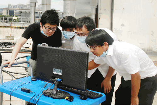 七一七所技術人員,在所內試驗樓頂頭頂烈日開展工作。