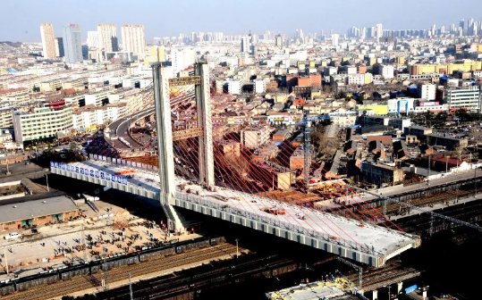 ▲2019年5月,完成濟南貨運大北環斜拉橋250000千牛轉體球鉸的的研制、設計、制造。本次鐵路斜拉橋轉體重量,單球鉸直徑均居鐵路橋梁世界之最。