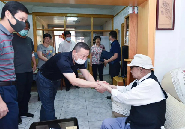七院黨委書記、黨委副書記帶隊走訪慰問了健在的抗日戰爭時期及以前參加革命工作的李俠、邢家千、于占全、楊海川、肖元壽、宋振英等6位老同志,送去院黨委的祝福和慰問金,向他們表示感謝和崇高敬意。6位老同志年齡都在90歲以上,最年長的李俠老人已101歲。