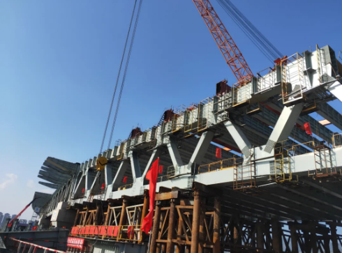 福州市道慶洲過江通道鋼桁梁主桁順利合龍