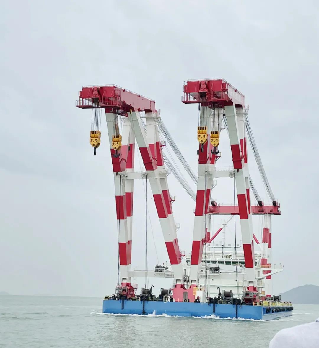 七〇八所研發(fā)團(tuán)隊(duì)在船型設(shè)計(jì)中充分考慮項(xiàng)目鋼梁吊裝航空限高及工作水域復(fù)雜等限制條件。后期,該船還可改裝為2200噸雙臂架變幅式起重船,用于海上風(fēng)電安裝等工程作業(yè),大大拓展了其實(shí)用性。該船將在澳門工作19個(gè)月,待完成大橋施工使命后,再次回到船廠進(jìn)行二期改造。