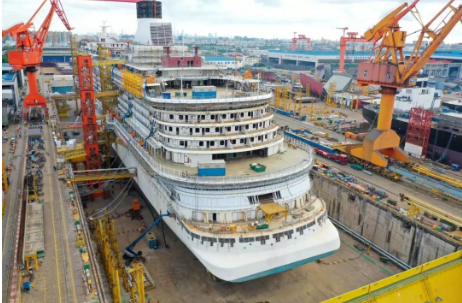 至此,中國首制大型郵輪總體進度已完成77.27%!