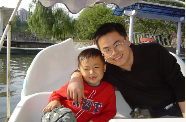 △姚勝華與兒子姚靖維童年合影