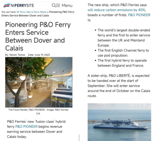 每艘“P&O Pioneer”這樣的“融合級”渡輪每年可以運載50萬個貨運單位,2艘船投運后,可以通過更少的航程來運輸同等數(shù)量的貨物,從而大幅提高運載效率。
