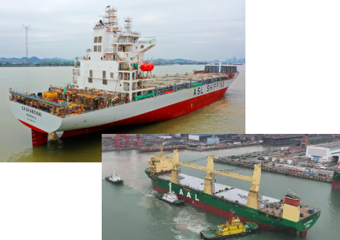 黃埔文沖同日完成2艘船舶出塢節(jié)點(diǎn),包括為亞海航運(yùn)批量建造的1600TEU系列支線箱船首制船、為AAL SHIPPING公司批量建造的32000DWT重吊船2號(hào)船,均為近年來黃埔文沖根據(jù)市場(chǎng)需求優(yōu)化的產(chǎn)品。