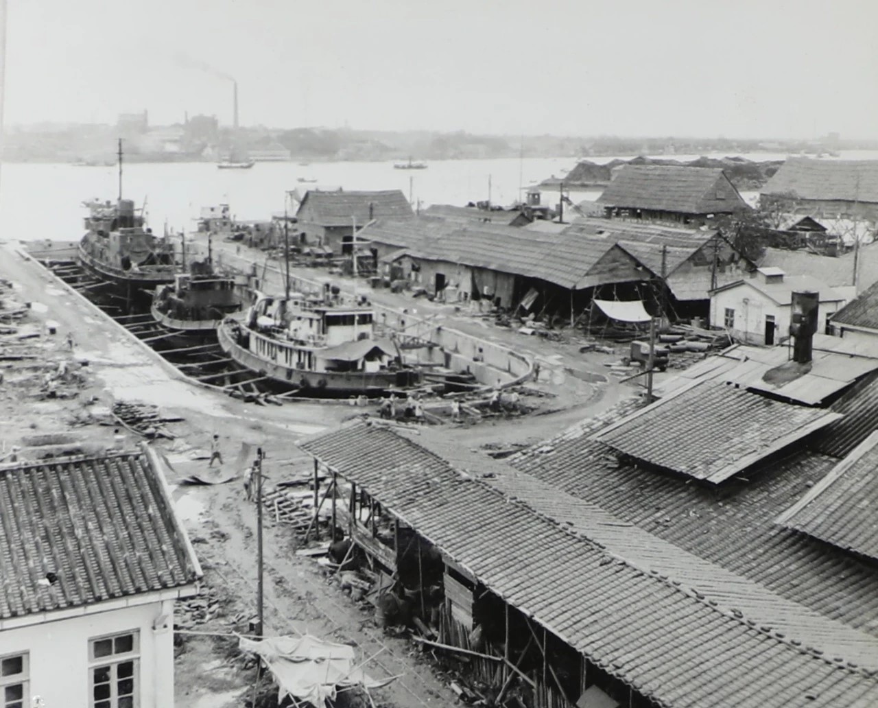 1957年拍攝的廣州造船廠船塢區(qū)