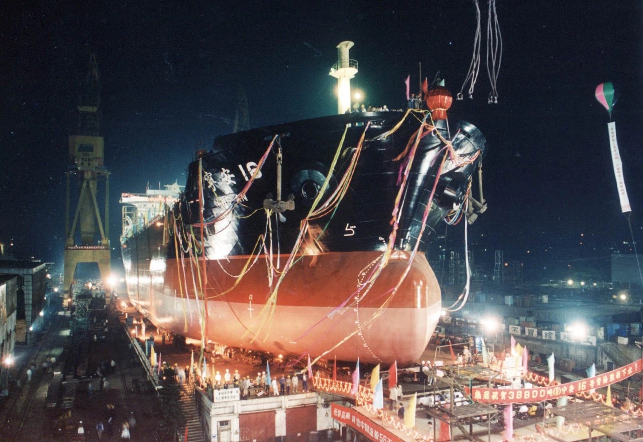 1994年,建造的38800噸散貨船“寧安16”號下水