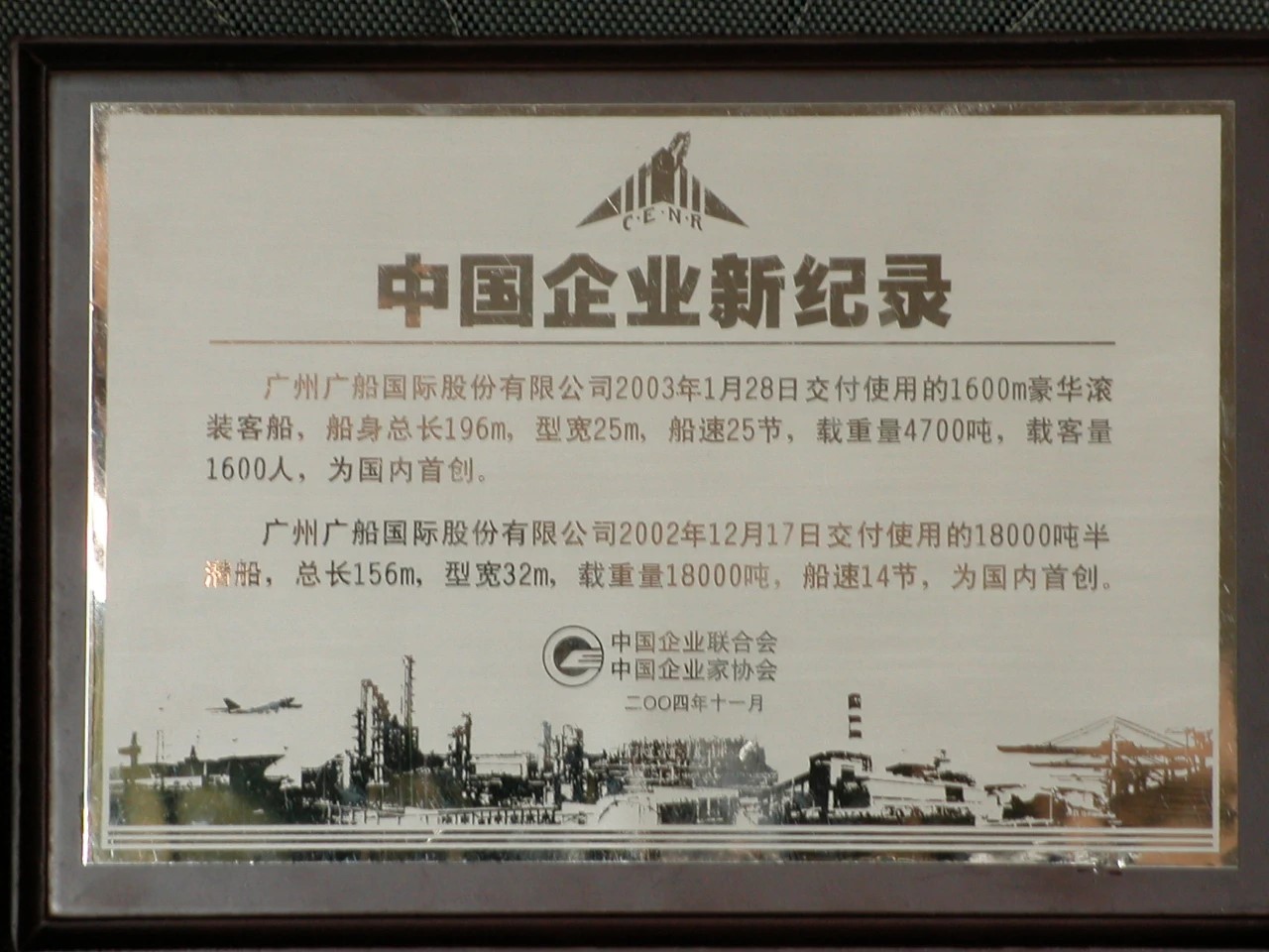 2004年,建造的豪華客滾船和半潛船獲“中國企業(yè)新紀錄”