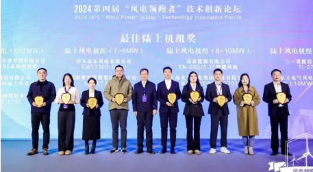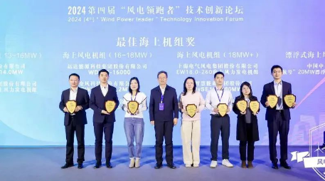 開年即“開跑”,展示新“風貌”。1月9日, 2024(第四屆)“風電領跑者”技術創(chuàng)新論壇暨頒獎盛典在北京成功舉行,活動共評選出“風電領跑者”最佳陸上機組獎、最佳海上機組獎、最佳零部件產品獎、最佳服務產品獎和年度最佳創(chuàng)新獎五類大獎,中國船舶集團旗下中船科技子公司中船海裝H305-25MW海上風電機組、H220-6.XMW陸上風電機組憑借其創(chuàng)新設計和優(yōu)異性能分別斬獲了“最佳海上機組獎”和“最佳陸上機組獎”。