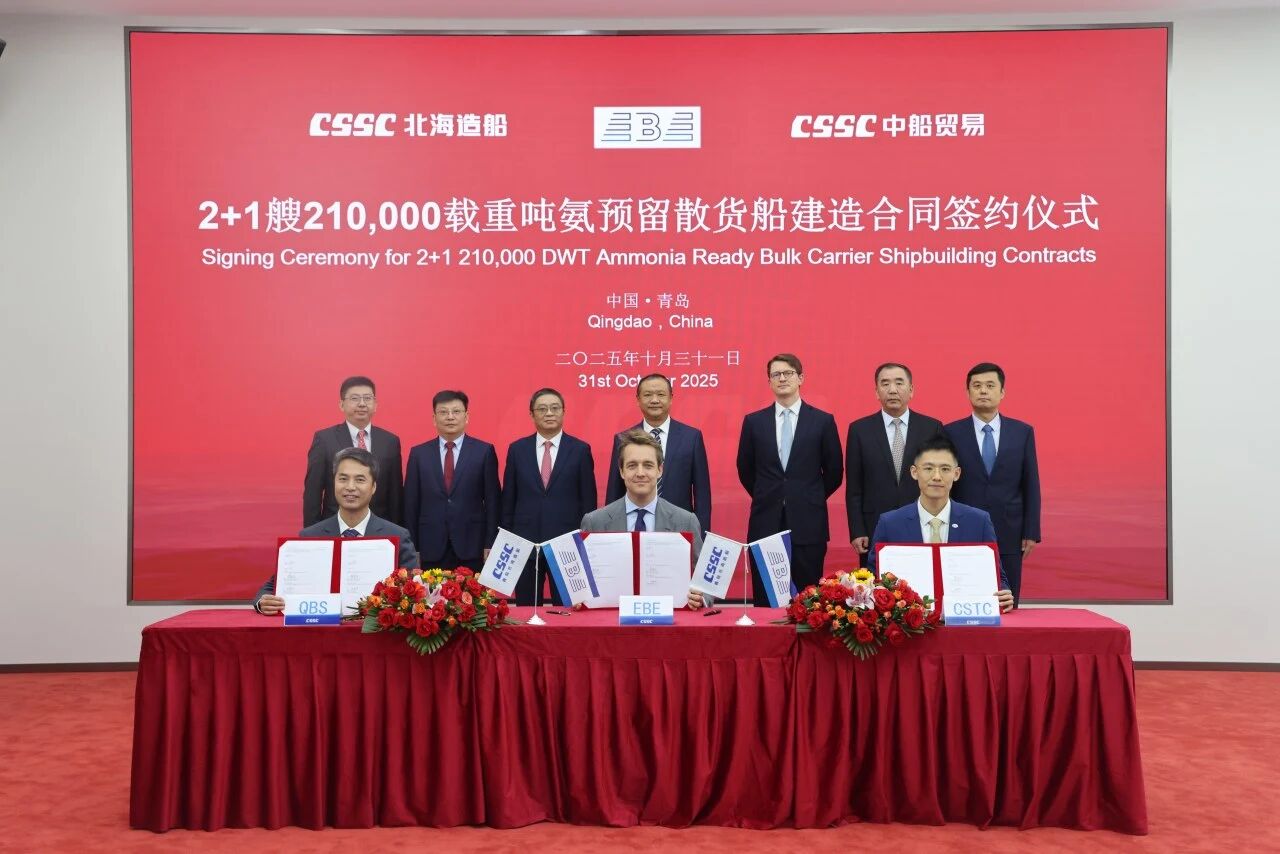 日前,中國船舶集團有限公司旗下北海造船聯合中船貿易,與比利時航運公司EBE成功簽署2+1艘21萬噸氨預留散貨船建造合同。此次合作是EBE公司首次在中國下單造船,體現了國際市場對北海造船建造實力的高度認可。