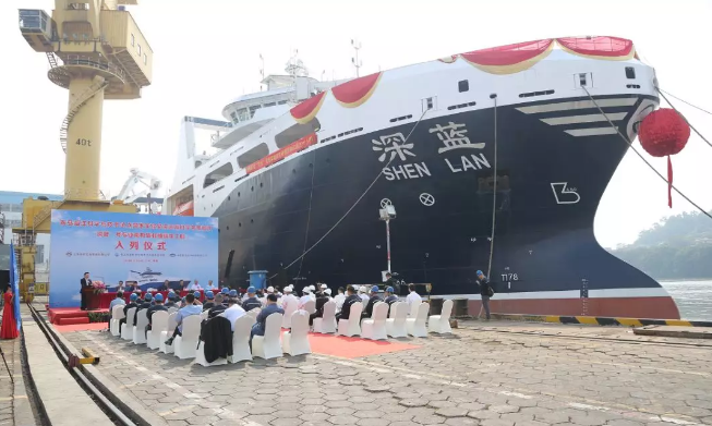 ????11月24日,青島海洋科學與技術試點國家海洋實驗室(以下簡稱“海洋試點國家實驗室”)在黃埔文沖船舶有限公司舉行了我國首艘漁業捕撈加工一體船“深藍號”入列國家海洋實驗室遠??茖W考察船隊儀式。