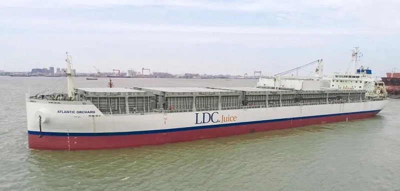 ????該船可以裝載19500立方米橙汁,大約重2萬噸,按照和水一樣的密度粗略計算,以裝滿500毫升一瓶為基準,該船滿載可裝4000萬瓶500毫升的橙汁,裝載運輸能力超強大!這艘船就好比一個海上移動的“大冰柜”,15個液貨罐均采用食品級絕緣不銹鋼材料,可裝載零攝氏度橙汁和零下10攝氏度濃縮橙汁,液貨艙始終保持低溫狀態(tài),確保不受細菌污染。