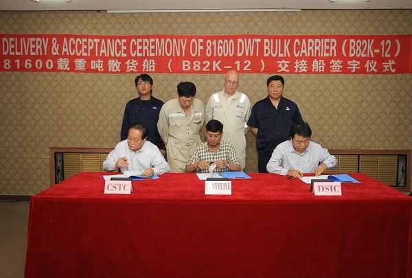 △ 6月10日上午,“GOLDEN FORWARD”號簽字交付。