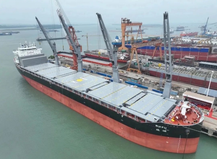 日前,中船集團上船院研發設計62000噸重吊多用途船OCTOPUS 62 “明融”號、“瑞福”號命名交付。