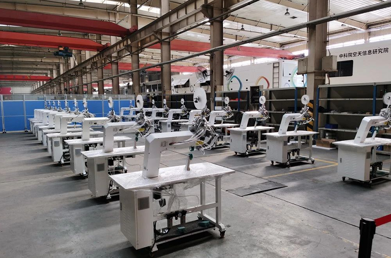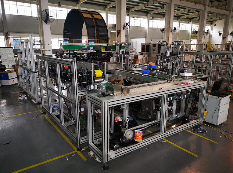 ????通用技術(shù)集團(tuán)僅用9天成功下線防護(hù)服壓條機(jī)并實(shí)現(xiàn)量產(chǎn)。目前全自動(dòng)平面口罩機(jī)完成樣機(jī)裝配,立體口罩機(jī)也即將下線。