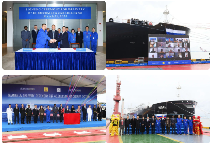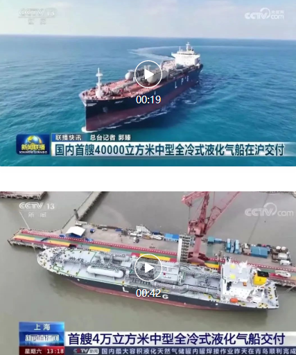 3月31日,中國(guó)船舶集團(tuán)旗下江南造船聯(lián)合中船貿(mào)易為日本KUMIAI公司建造的40000立方米中型全冷式液化氣船(MGC)“MIRAI”號(hào)順利交付,中央電視臺(tái)《新聞聯(lián)播》 《新聞直播間》對(duì)此進(jìn)行了報(bào)道。