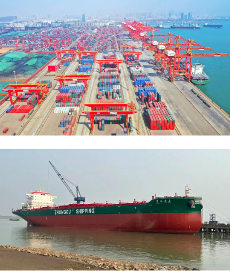 在公開照片中,與習近平總書記“同框”的,正是中國船舶集團旗下武漢船機、七一六所參與建設的日照港順岸開放式全自動化集裝箱碼頭,以及上船院設計、汾西重工提供關鍵配套的4600箱集裝箱船“中谷南昌”號。