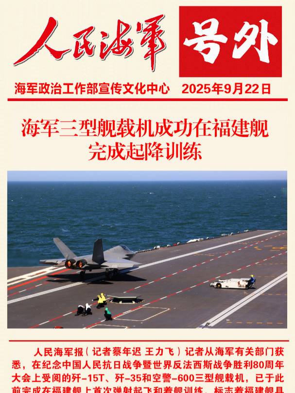 完成在福建艦上首次彈射起飛和著艦訓練