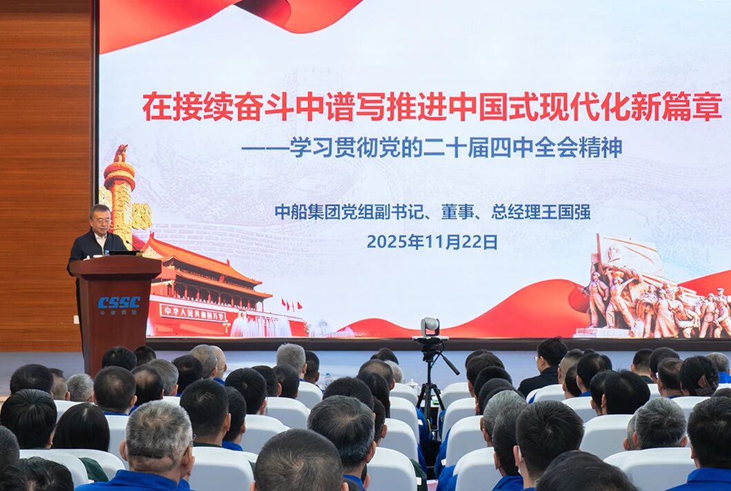 黨組成員在宣講會上強調(diào),學習好貫徹好黨的二十屆四中全會精神是當前和今后一個時期的重大政治任務。要更加緊密地團結在以習近平同志為核心的黨中央周圍,全面貫徹習近平新時代中國特色社會主義思想,把思想和行動統(tǒng)一到黨中央對形勢的科學判斷和決策部署上來,狠抓各項工作落實。要堅持創(chuàng)新驅動,抓住新一輪科技革命和產(chǎn)業(yè)變革歷史機遇,加快推進高水平科技自立自強;要加快提質(zhì)升級,堅持智能化、綠色化、融合化方向,爭當建設現(xiàn)代化產(chǎn)業(yè)體系的排頭兵;要全面深化改革,進一步解決制約高質(zhì)量發(fā)展的卡點堵點問題,持續(xù)增強發(fā)展動力和活力;要強化根魂優(yōu)勢,堅持和加強黨的領導、黨的建設,以高質(zhì)量黨建引領保障高質(zhì)量發(fā)展,確保2025年和“十四五”規(guī)劃目標任務完成、“十五五”良好開局,為以中國式現(xiàn)代化全面推進強國建設、民族復興偉業(yè)貢獻中船力量。