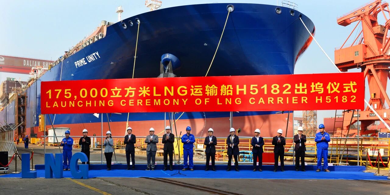 LNG運輸船H5182出塢,全船貨物圍護系統主工序周期縮短20天,有效提速生產節奏。