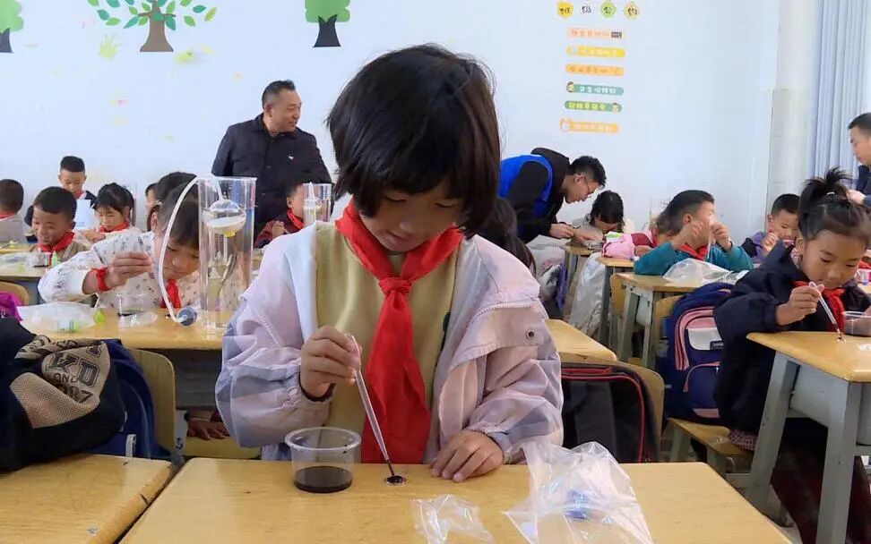 深秋的陽光灑在教室桌椅上,斑駁的光影中躍動著一抹抹深藍身影,他們或是捧著船模細心講解,或是俯身指導孩子操作試驗教具,或是展示科學的神奇“魔法”。
