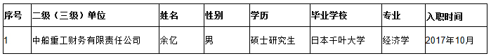 中國船舶重工集團有限公司擬接收留學回國人員信息的公示